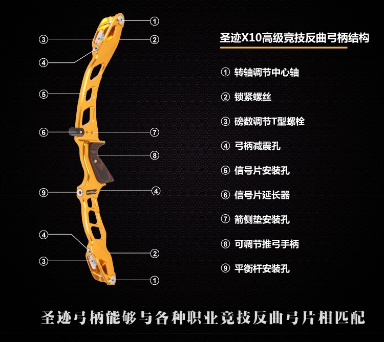 三利達SANLIDA圣跡X10高級競技反曲弓柄轉軸調節反曲弓把射箭器材